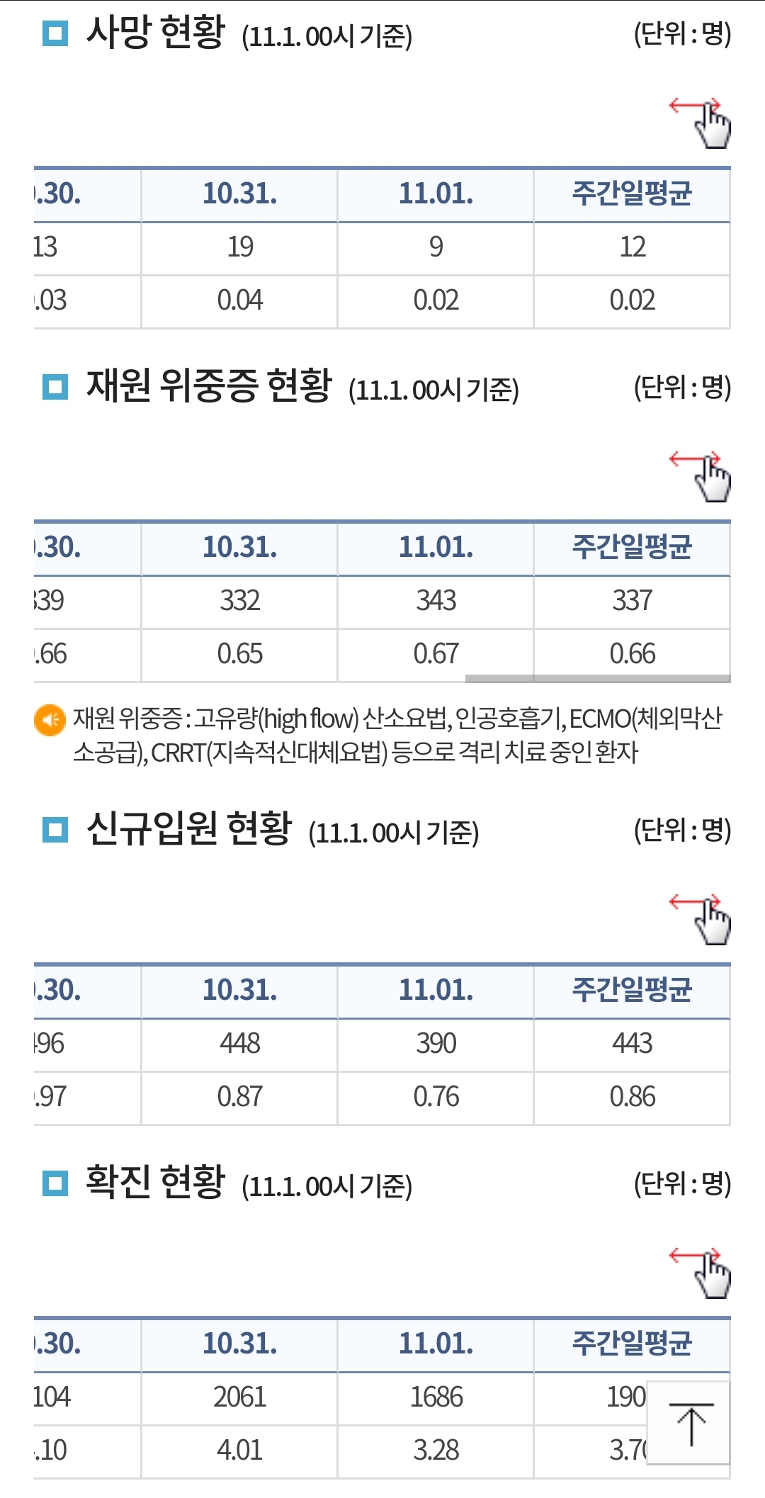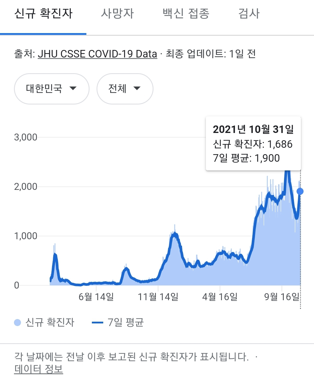 코로나19집계(2021.11.1. 0시기준): 1686명 본문