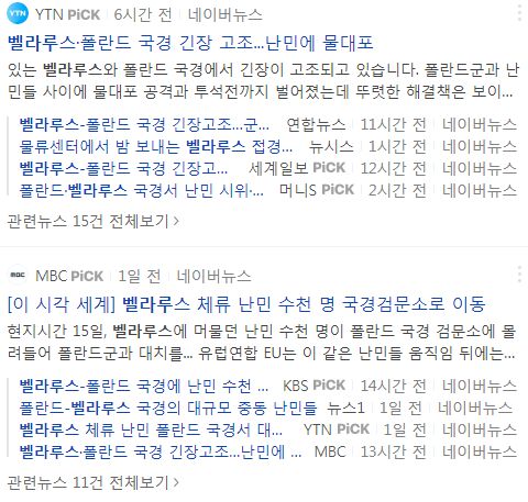 벨라루스, EU에 경제 제재당하자 폴란드·리투아니아에 난민 떠넘겨 폴란드, 국경에 군인 900명 배치 EU 정치적 목적으로 인간 도구화