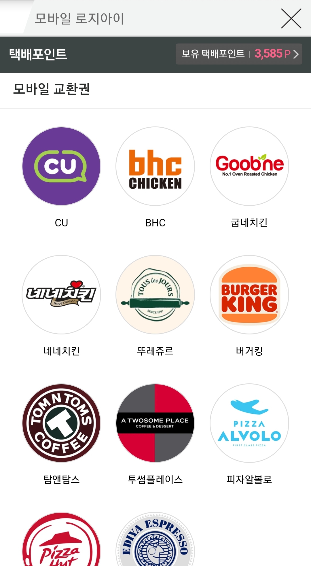 택배포인트는 몇 군데서 쓸 수 있지만 별로 쓸 만해보이지는 않다.