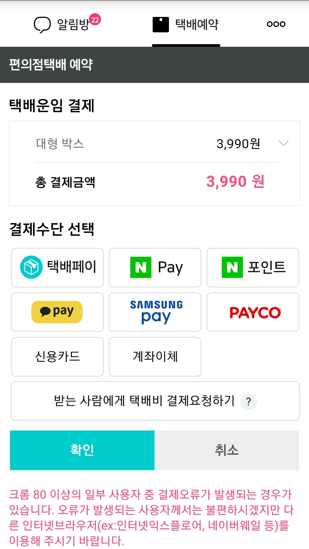 - 그 외, 택배페이라는 자체 간편결제를 만들었던데, 별다른 소개없이 결제용 신용카드 등록화면이 나왔다. 굳이 가입할 필요를 느끼지 못했다.