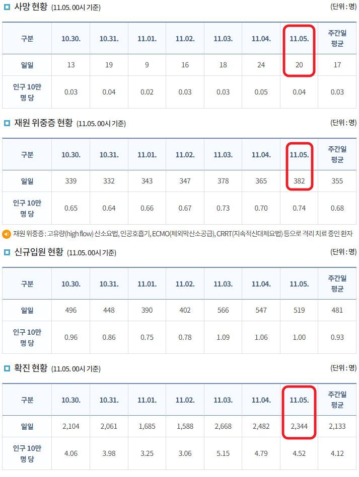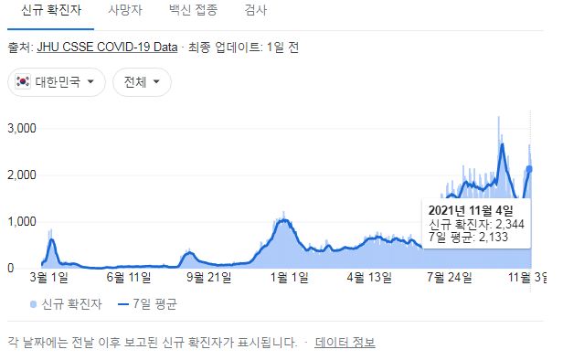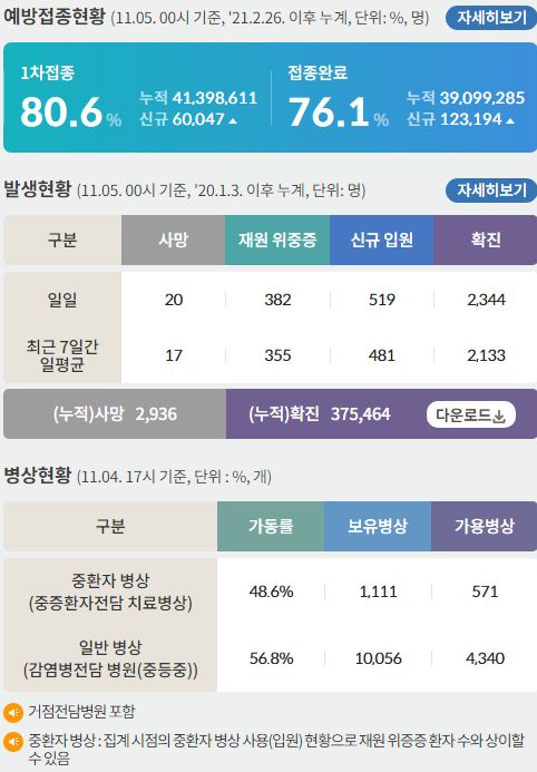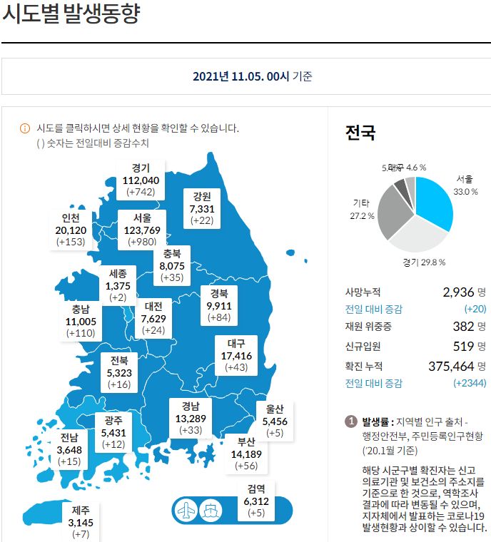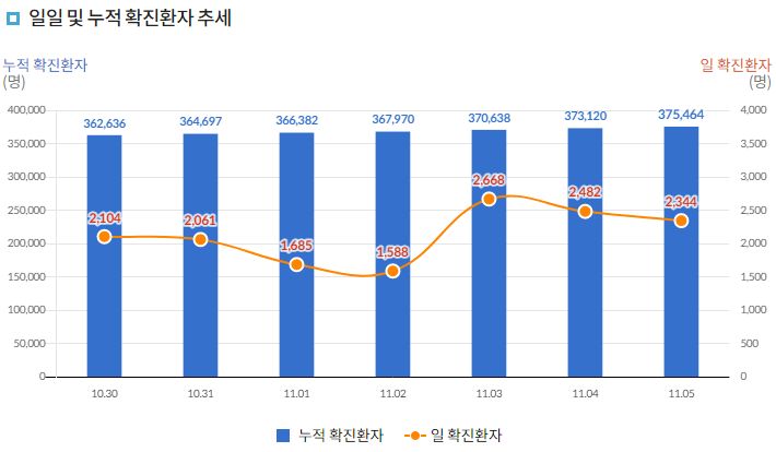 코로나19 집계(2021.11.5. 0시기준): 2344명 본문