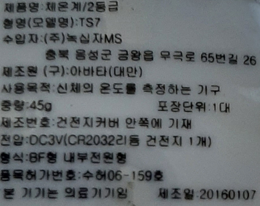 이 체온계는 오래 전에 구입한 녹십자 TS7 적외선 체온계다.