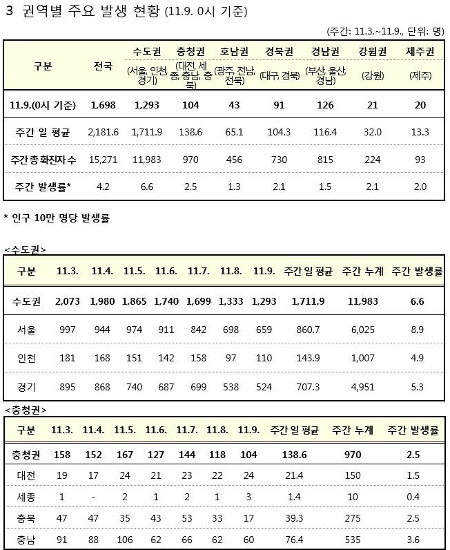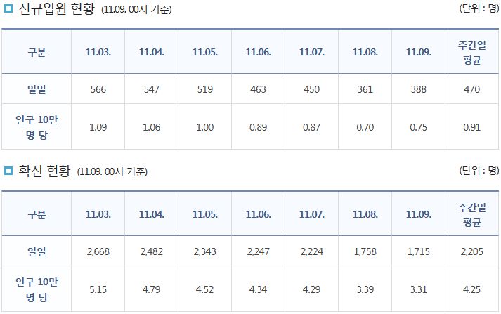 코로나19집계(2021.11.9. 0시기준): 1715명 본문
