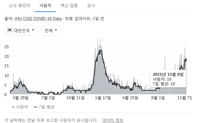 | 코로나19, 주간 발생동향(유행) 분석(2021.11.9.~11.10.기준)/:/ 병상, 변이주 분석은 없음. 이동량분석, 확진자 연령대별 분석 등 (0) | 2021.11.10 |