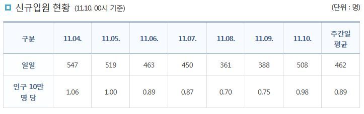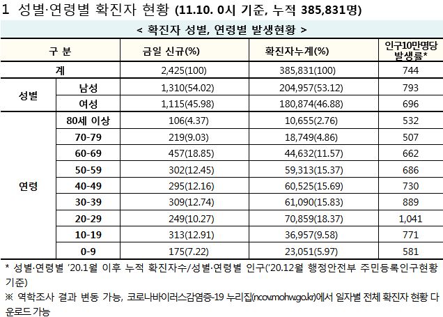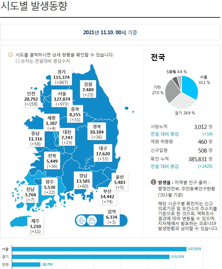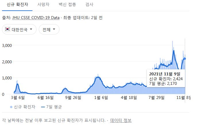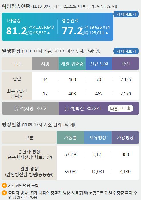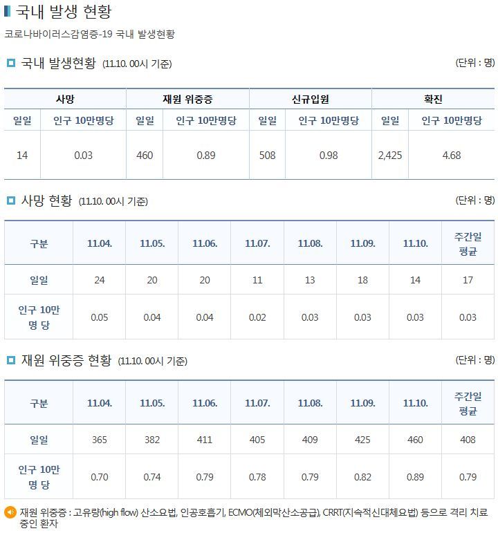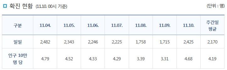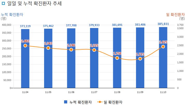 코로나19집계(2021.11.10. 0시기준): 2425명 본문