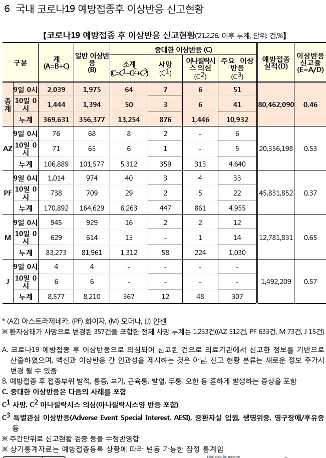 백신 부작용 접수통계
