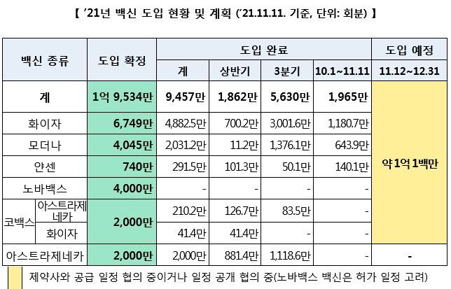백신재고, 사용, 도입관련