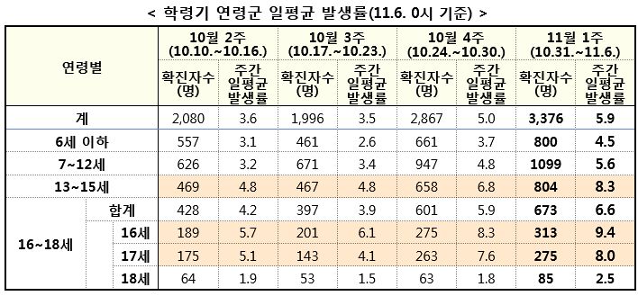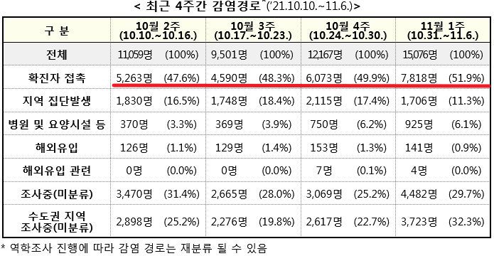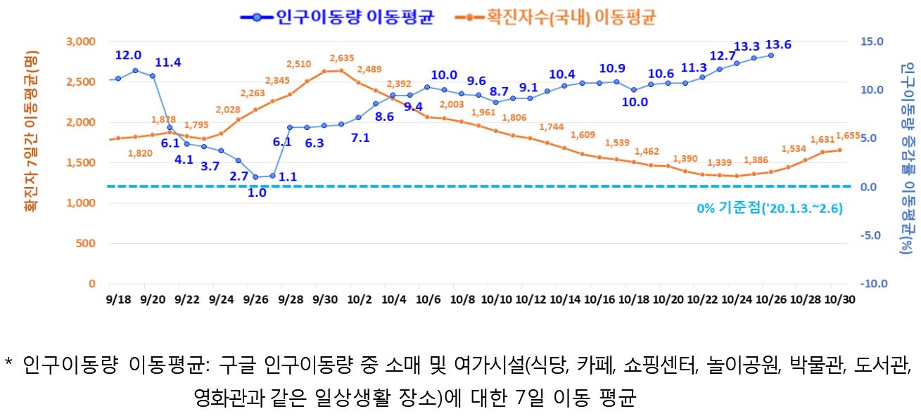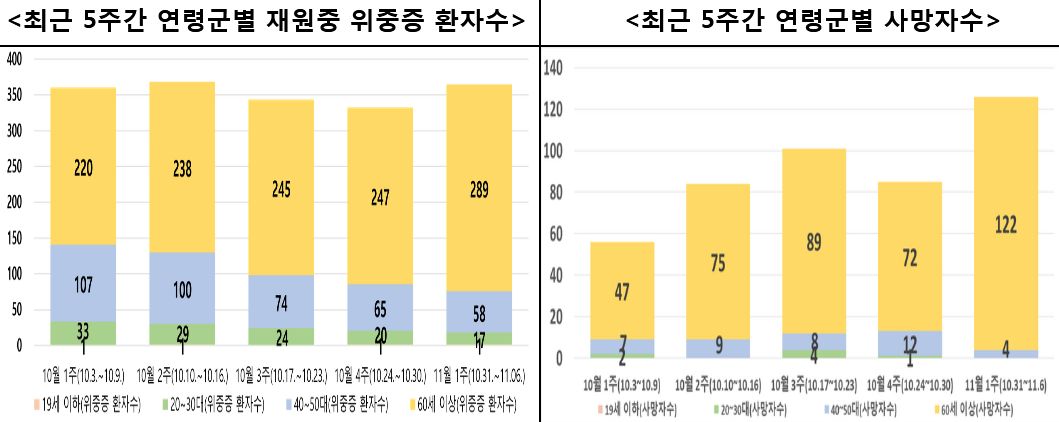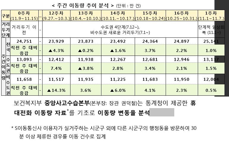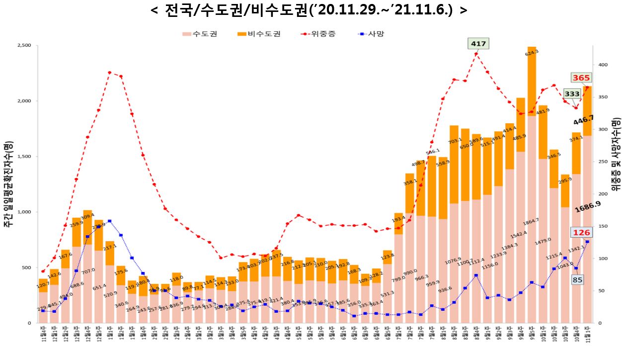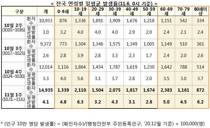 코로나19, 주간 발생동향(유행) 분석(2021.11.9.~11.10.기준)/:/ 병상, 변이주 분석은 없음. 이동량분석, 확진자 연령대별 분석 등 본문