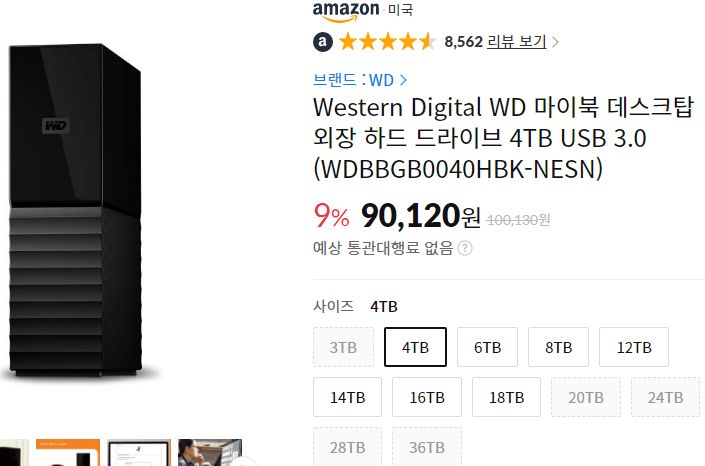 (11번가-아마존) WD 외장하드 마이북 4TB (9만원 →8.3만원/우주패스) 본문