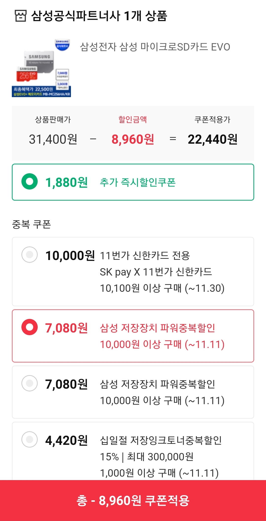 (11번가) 삼성전자 microSD EVO+ 256GB (2.2만원 → ~2.7만원.. 추천아님) 본문