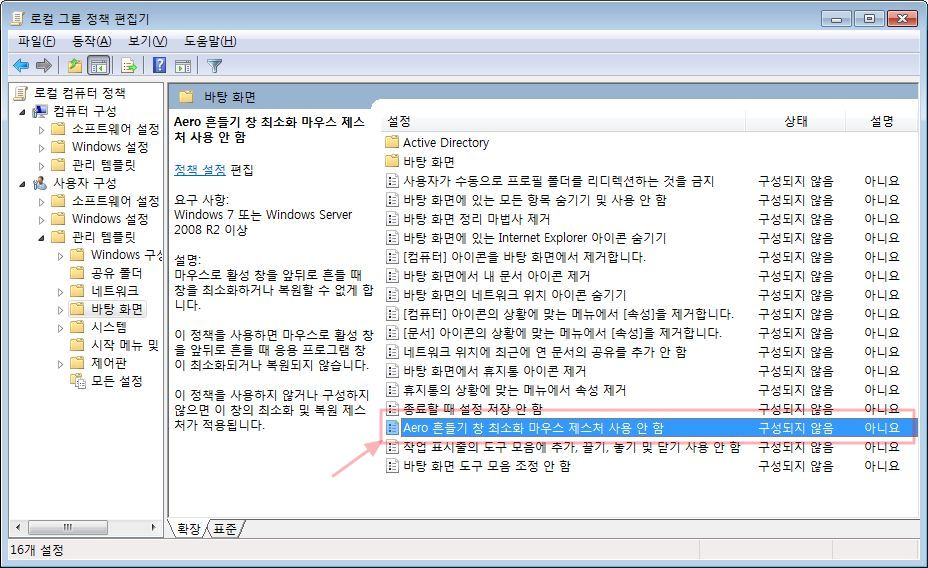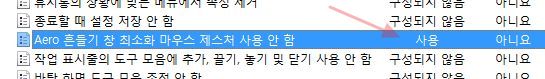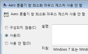 윈도우 7이상 Aero 바탕화면에서, 마우스흔들어 창최소화하는 기능 없애기 본문