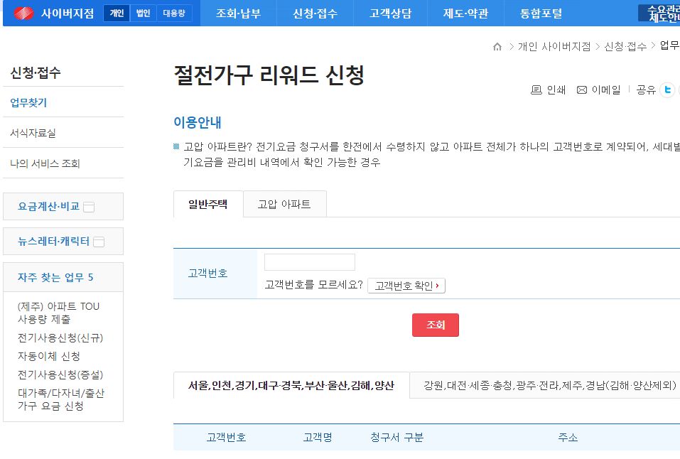한전 사이버지점 웹사이트에서 확인, 신청가능합니다.