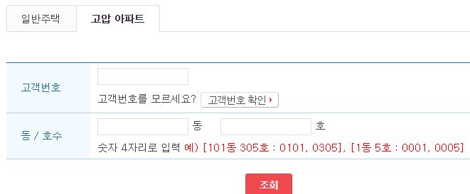고객번호가 필요하지만 아파트거주자도 아파트의 주소와 동호수를 입력해, 한전사이트에서 확인해볼 수 있습니다.