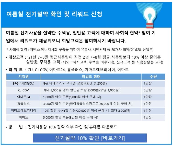 한국전력, 주택 여름철 전기절약 확인 및 리워드 신청 본문