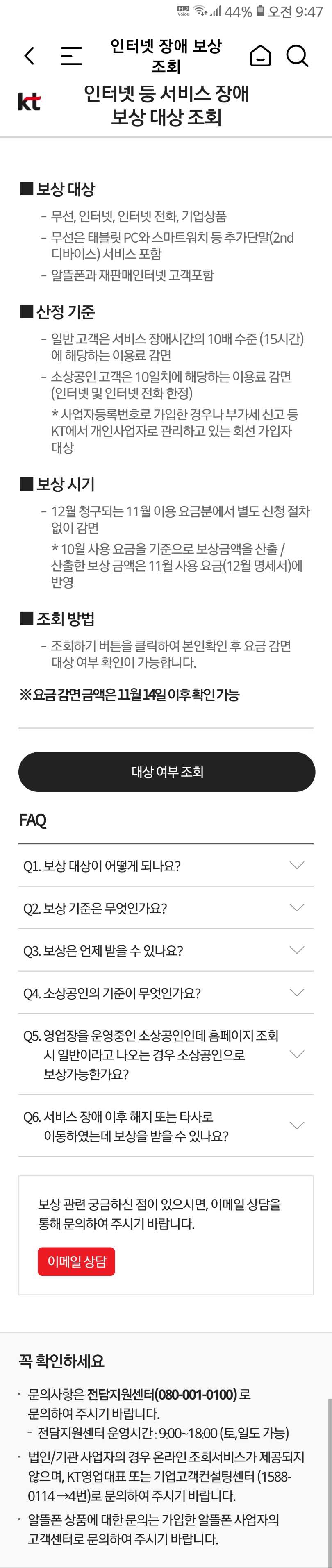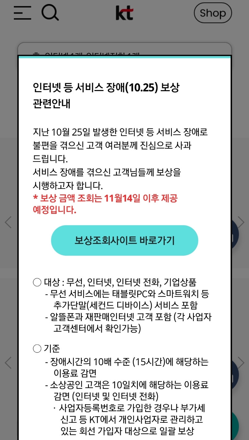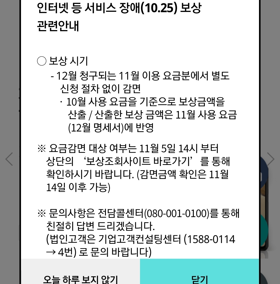 KT 2021.10.25.인터넷장애에 대한 보상공지 본문