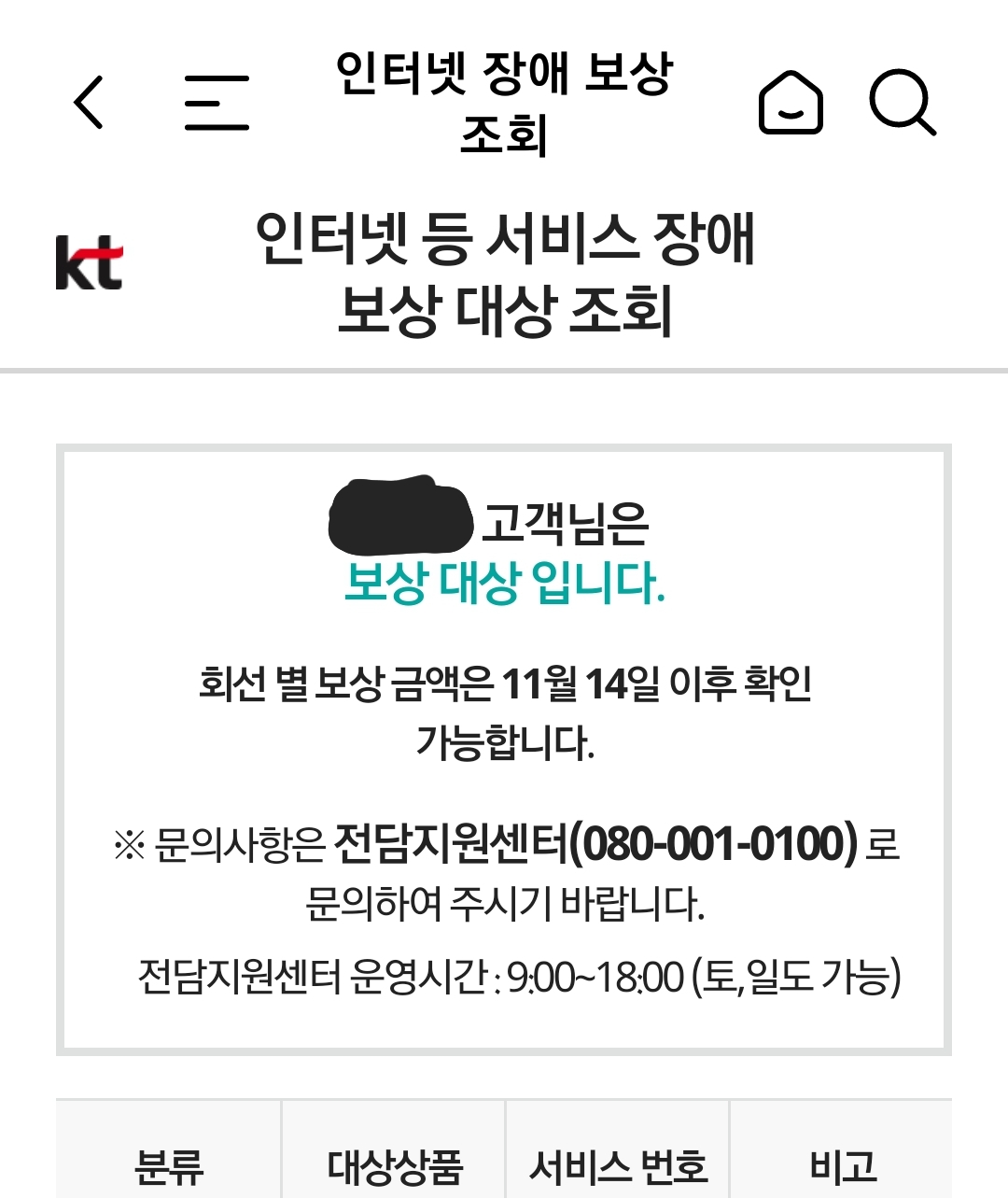 자기가 보상대상인지 여부를 확인하는 것은 지금 할 수 있고, 보상(요금감면)금액 확인은 11월 14일부터 가능합니다.