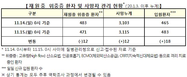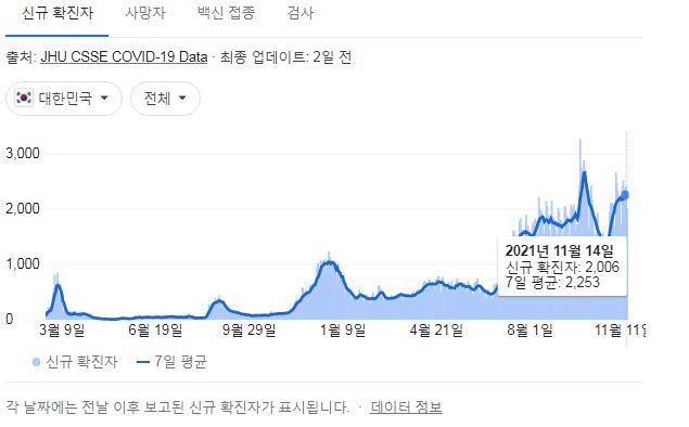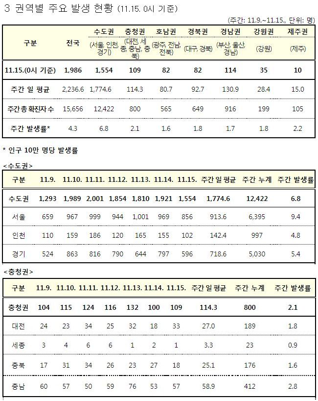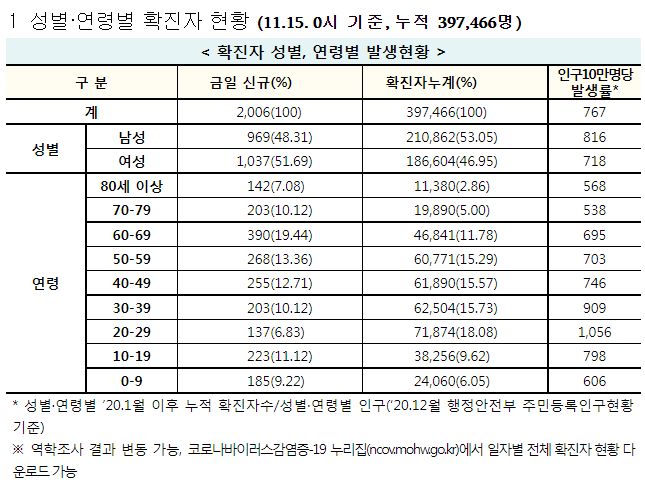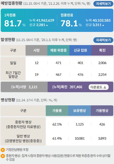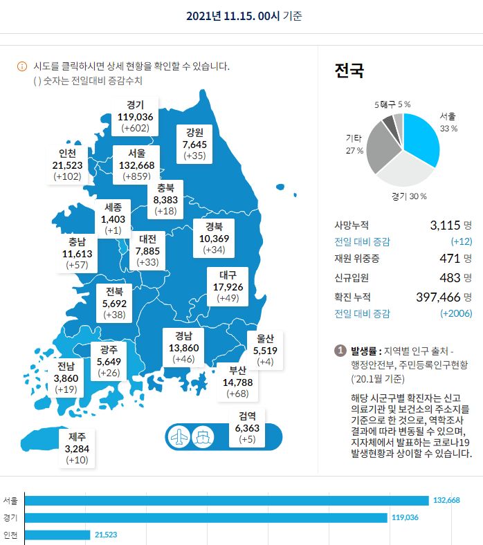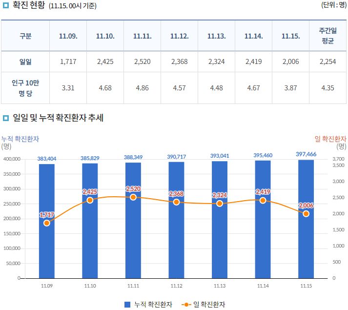 코로나19집계(2021.11.15. 0시기준): 2006명 본문