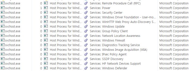 Svchost.exe를 쓰는 서비스를 찾는 방법: