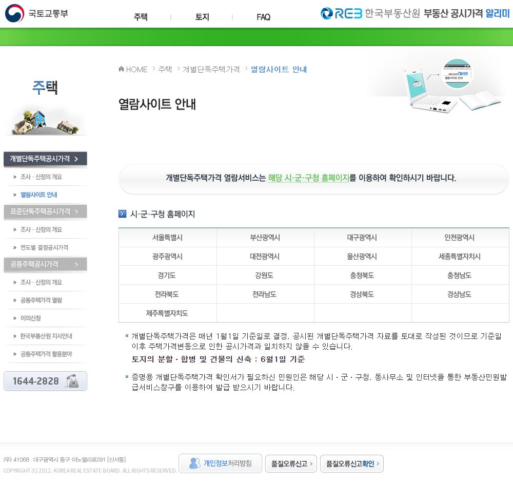 개별단독주택가격, 공동주택가격 열람사이트 본문