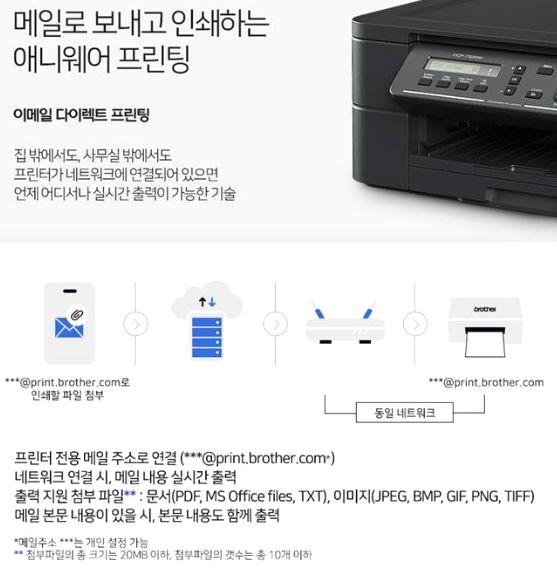 그 밖에, 이메일인쇄라고, 프린터 기계마다 이메일주소를 할당하고 부라더 서버에서 연결해주는 게 있는 모양입니다.