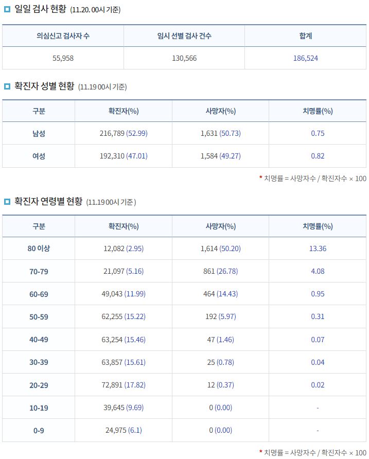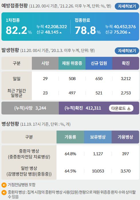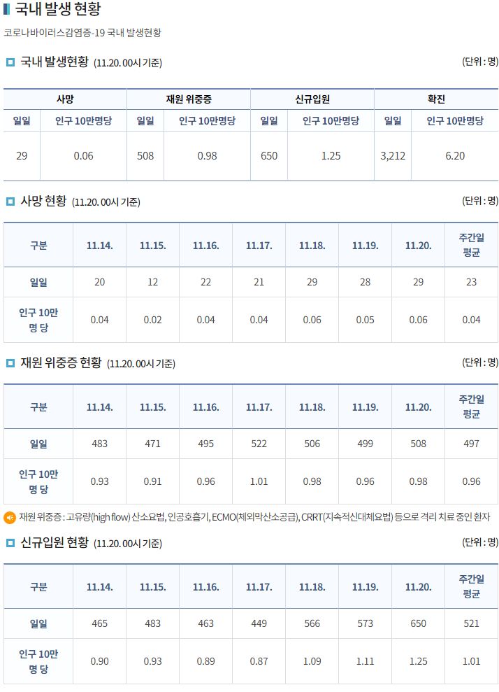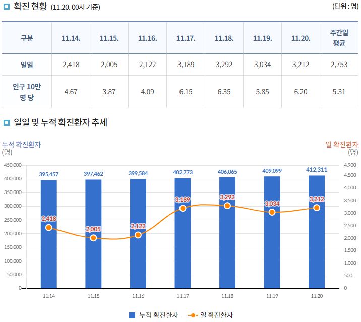 코로나19집계(2021.11.20. 0시기준):3212명 본문