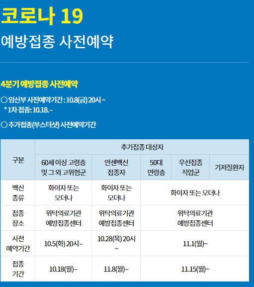 코로나19 예방접종 사전예약사이트. 아직까지 접종받지 않은 사람들, 10월 이후에 신규접종 중인 사람들,