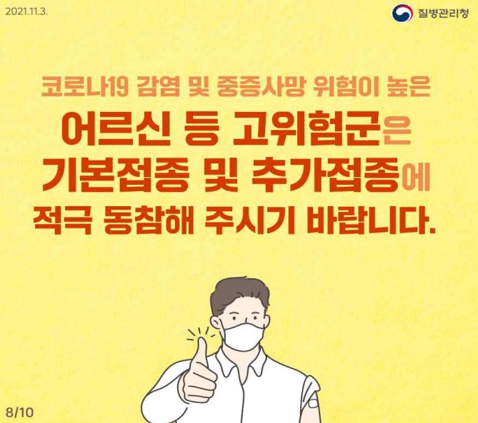 | 코로나19 수도권의료대응 강화대책 (2021.11.19): 코로나19치료용 병상 추가 차출, 추가접종(부스트샷) 더 빨리 접종, 재택치료판정 늘리기와 지원 (0) | 2021.11.20 |