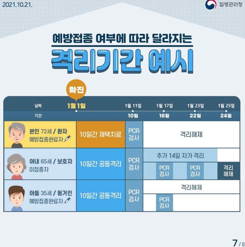60세 이상 확진자는 (병증의 급격한 악화시 대응이 늦을 수 있기 때문에) 예방접종완료자만 재택치료가능.