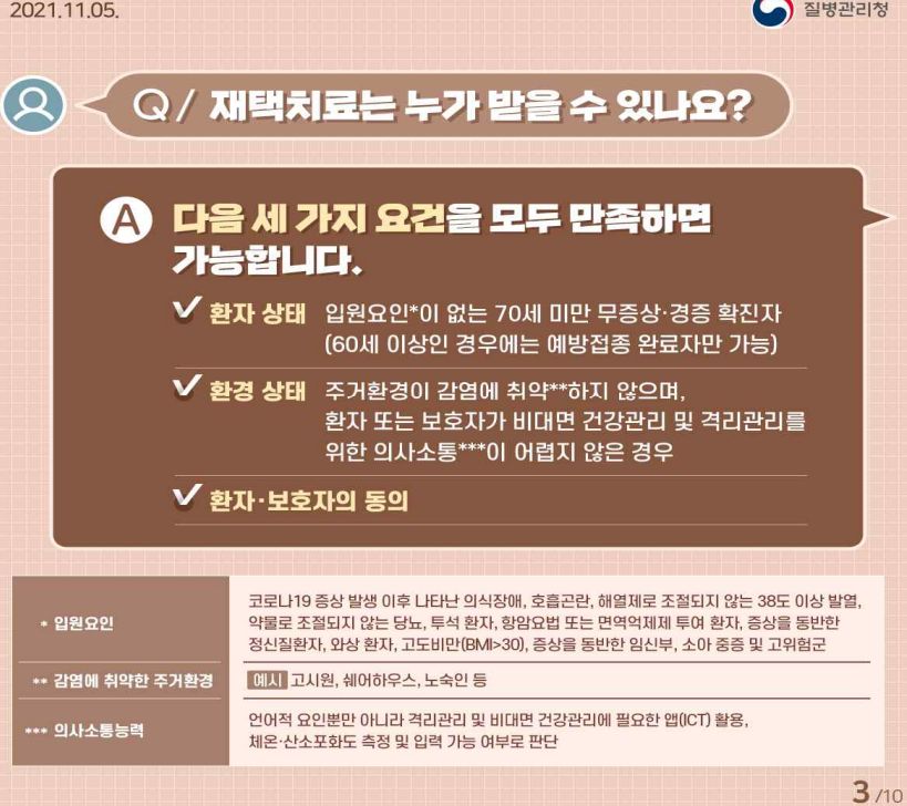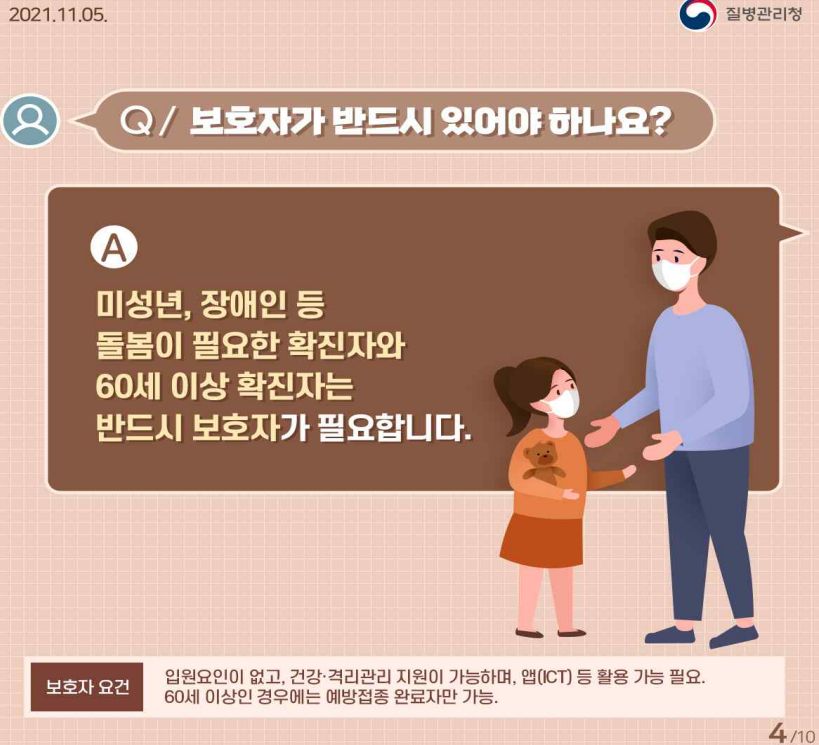 미성년, 장애인, 60세 이상 확진자는 재택치료받으려면 반드시 보호자 필요.