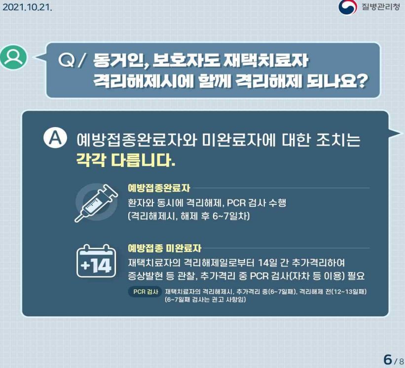 환자, 보호자, 동거인 모두 예방접종완료여부와 무관하게