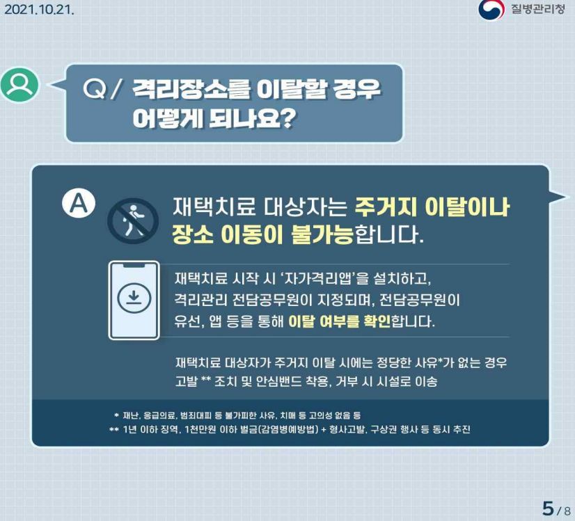 일단 재택치료가 시작됐으면 재택치료기간 중 자가격리. 외출금지.