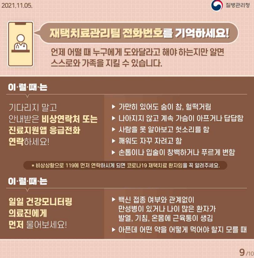 재택치료 중 증상이 악화되었으면 바로 응급전화. 119나, 재택치료안내때 받은 지역 담당기관번호.