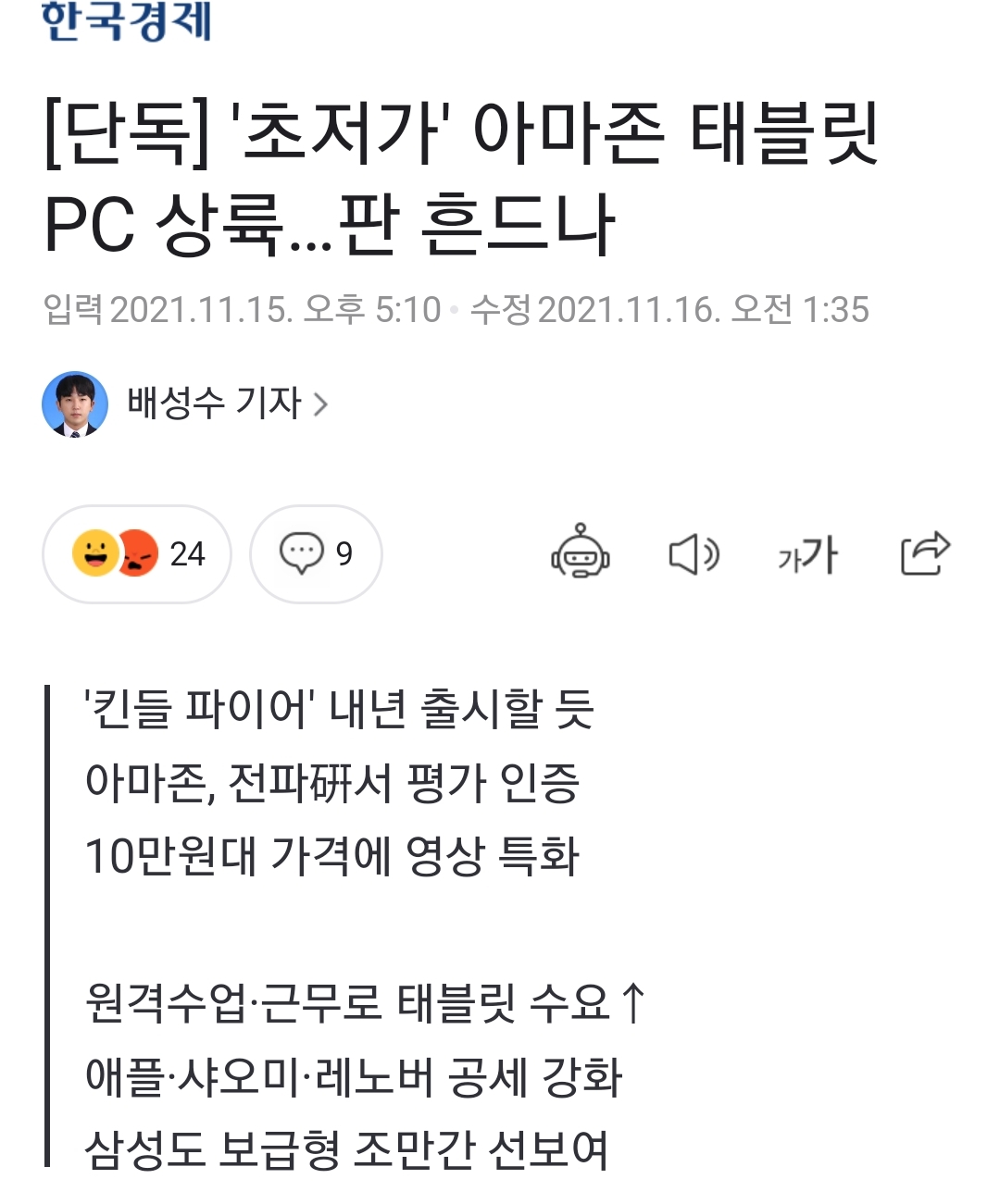 [단독] '초저가' 아마존 태블릿PC 상륙…판 흔드나