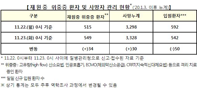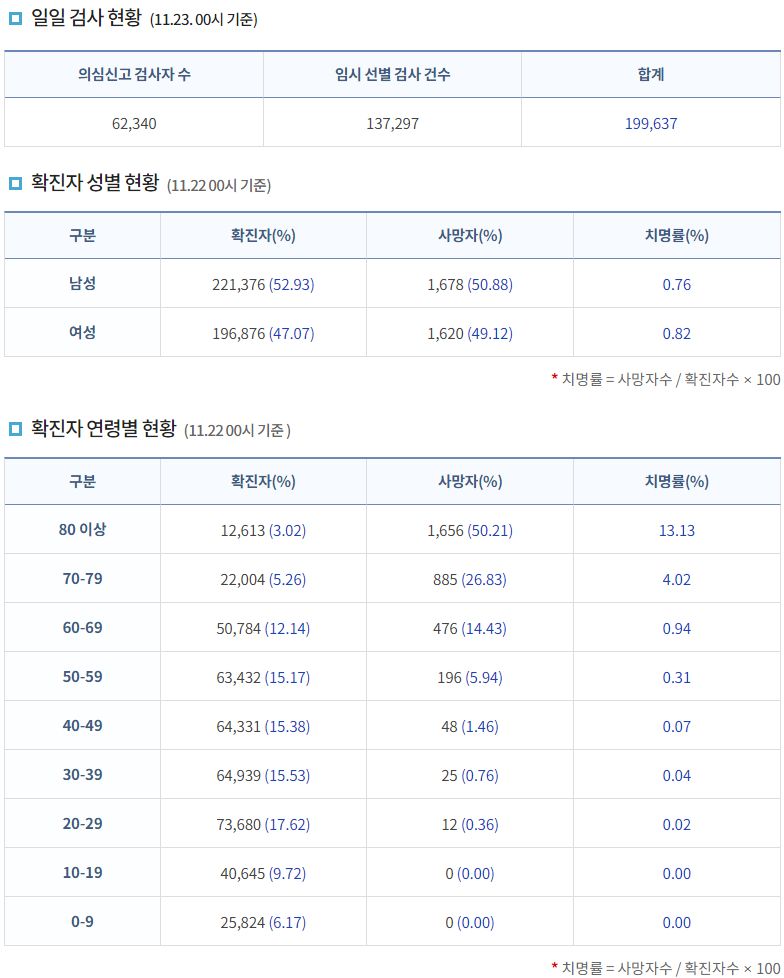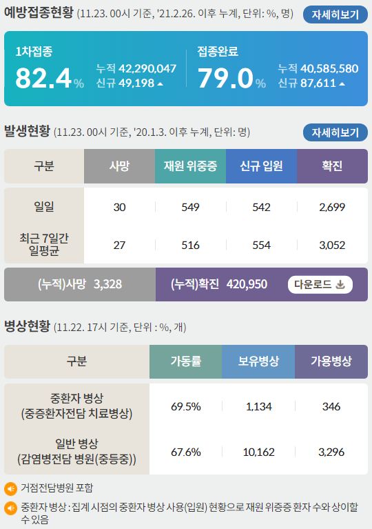 코로나19집계(2022.11.23. 0시기준): 2699명 본문