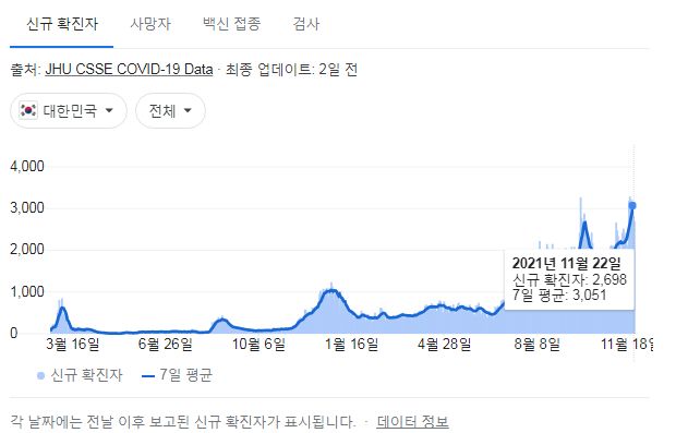 | 코로나19집계(2021.11.21. 0시기준): 3120명 (0) | 2021.11.21 |
