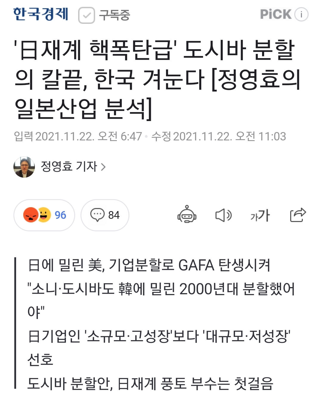 그 뉴스를 전하면서, 시대 변화에 잘 자극받지 않는 일본경영계가 일본에서 유명한 이 회사의 기업분할에 자극받을까, 그리고 이 분할이 성공적인 결과를 이끌어낼까, 그리고 2개 사업부를 독립시키고 남게 되는 도시바(키옥시아 지분 보유)가 몸집을 줄이고 투자를 받아 회생하면 우리가 신경쓸 상대가 될 수 있을지 보자는 기사입니다.