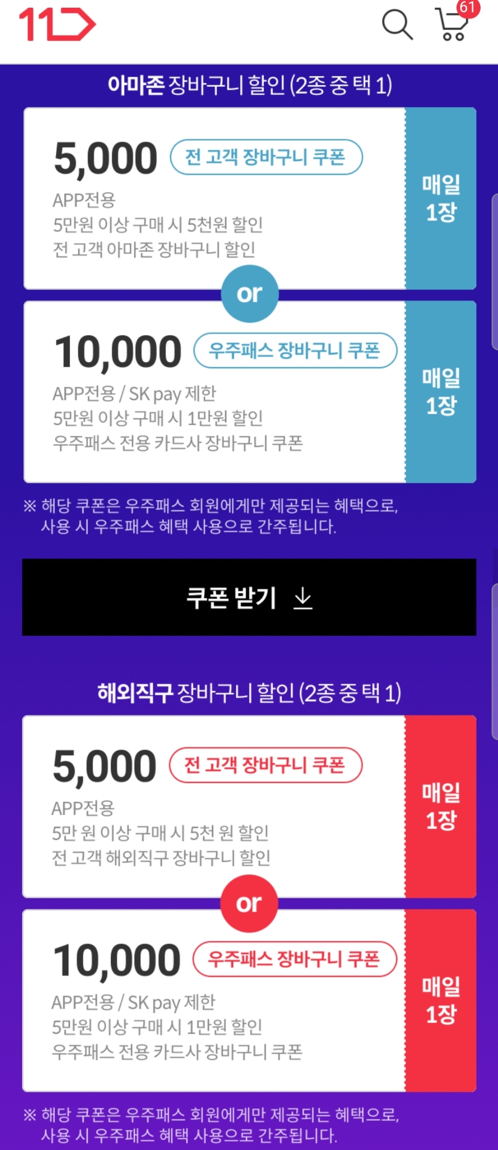 (상품쿠폰쪽 중복할인가능이 11번가신한카드 1만할인)