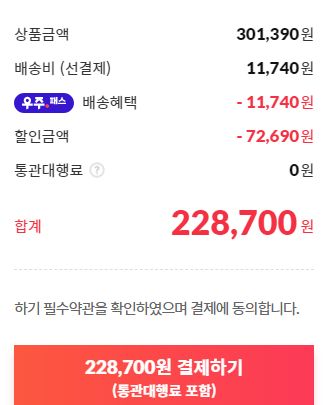 우주패스 회원+우주패스 1만원 블프쿠폰(매일 발급)이나 11번가신한카드 1만원 쿠폰 둘 중 하나를 적용해야