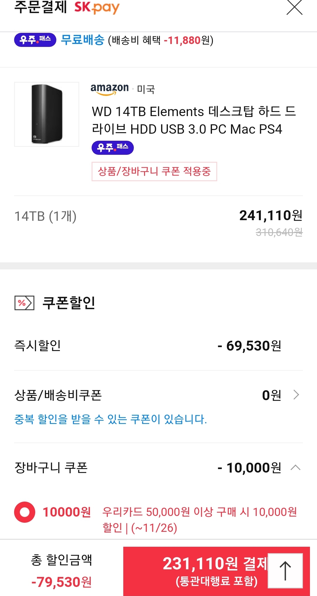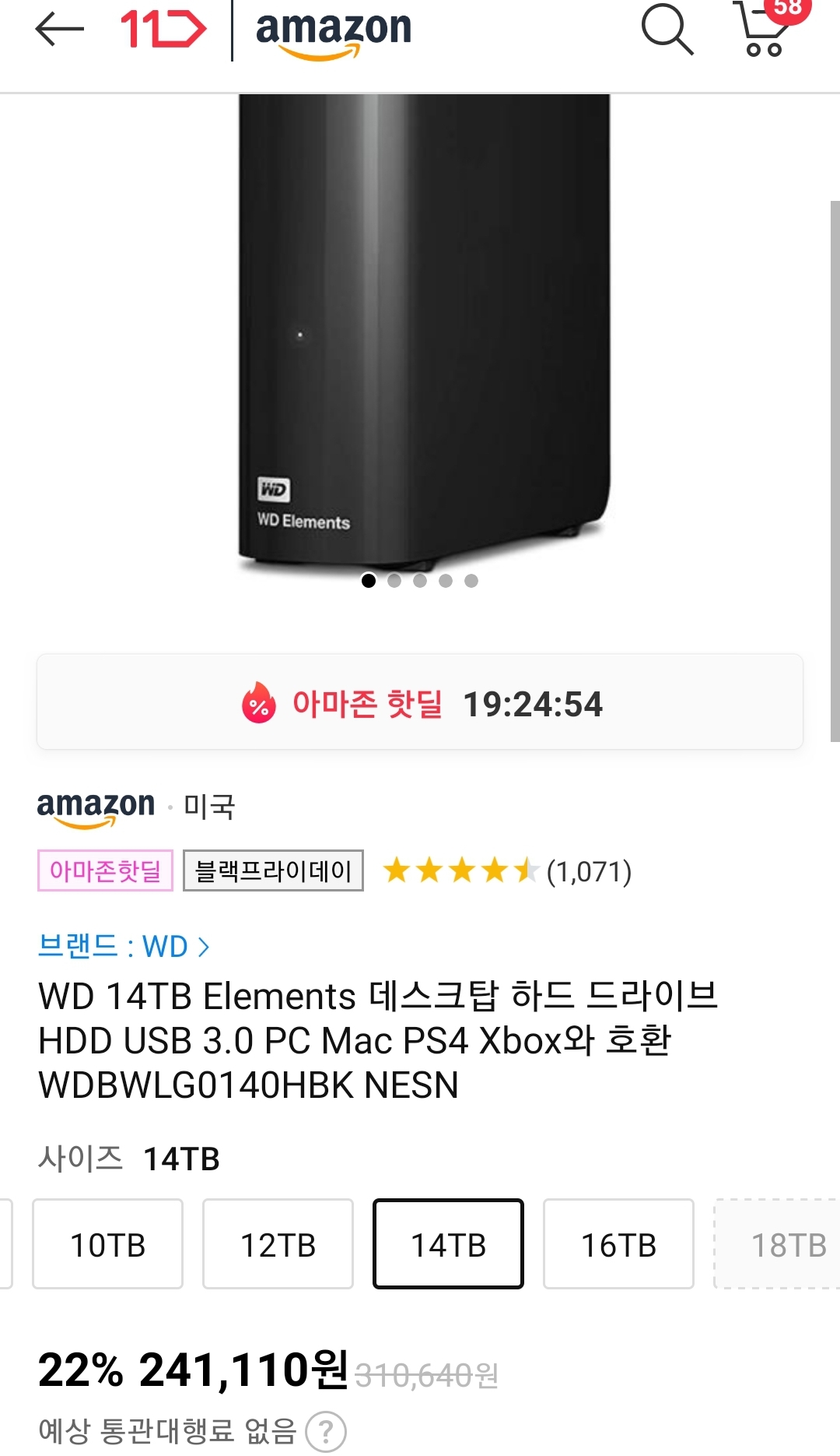(11번가-아마존) WD 엘리멘츠 14TB 외장하드(~24만원→ ~23만원/우주패스) 본문