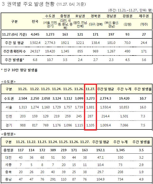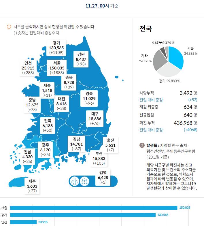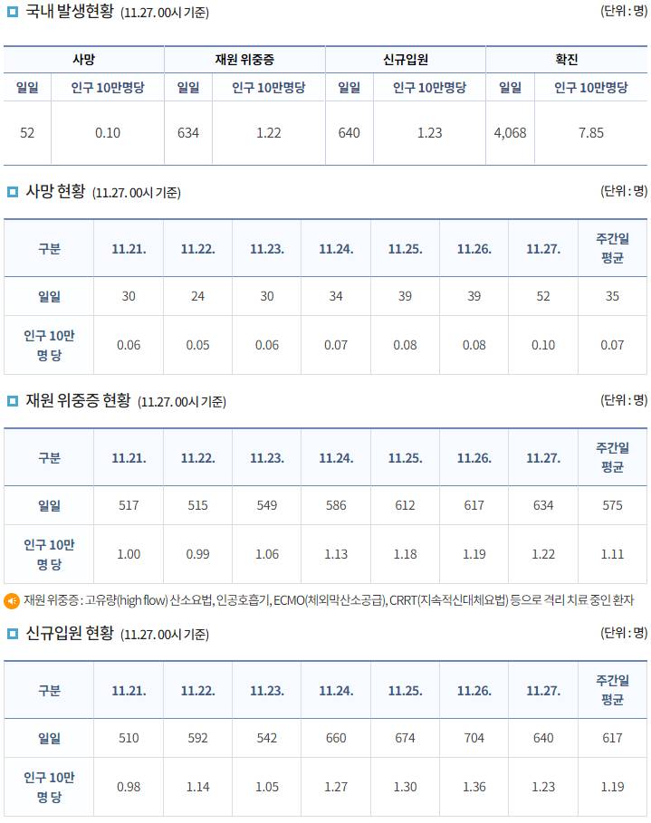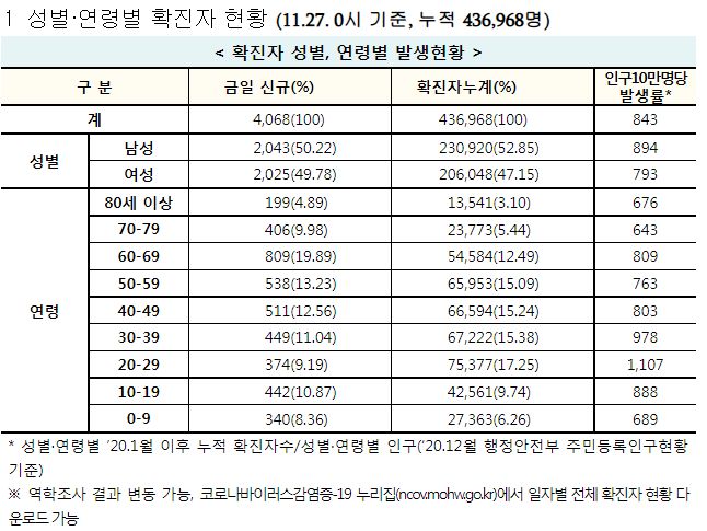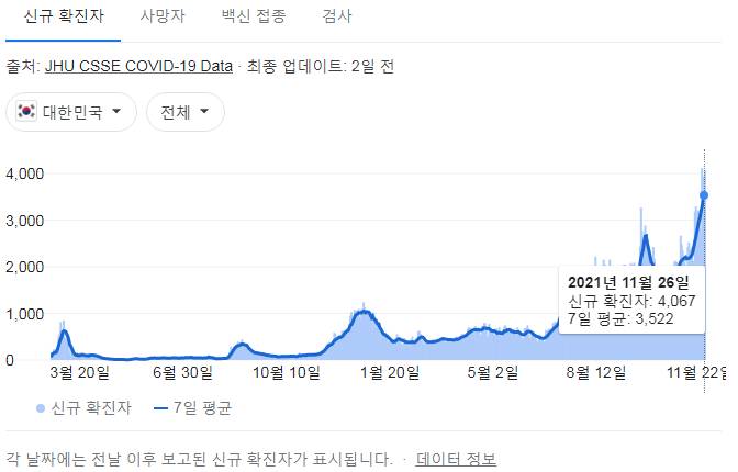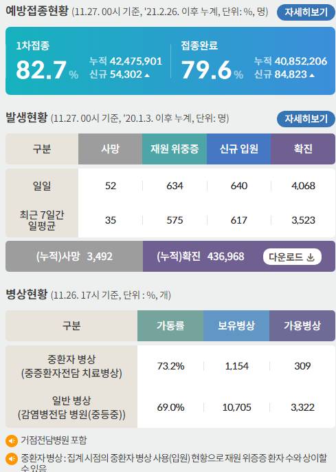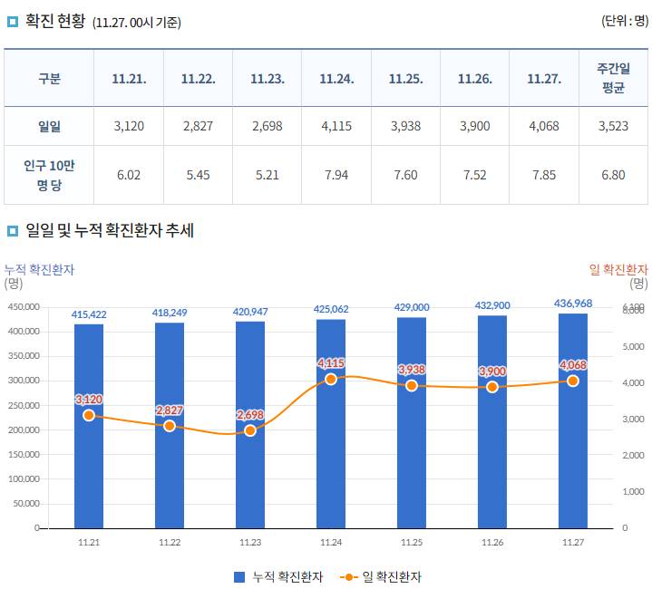 코로나19집계(2021.11.27. 0시기준): 4068명 본문