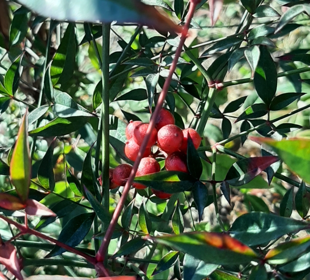가로수는 거의가 잎이 떨어져갑니다. 아직 잎과 열매를 달고 있는 녀석들도 있지만요. 이게 남천나무던가?