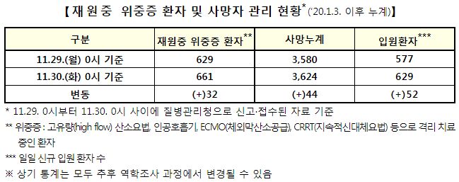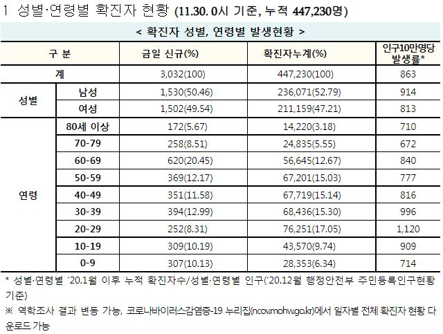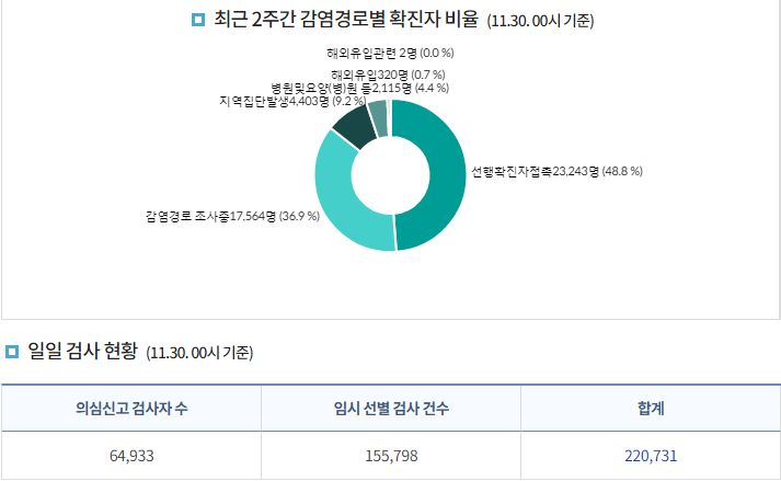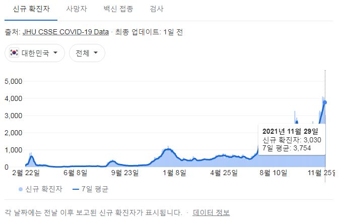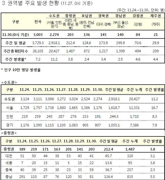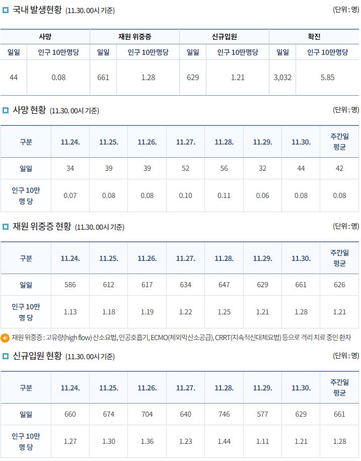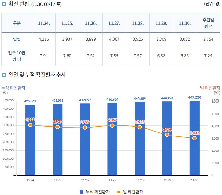 코로나19집계(2021.11.30. 0시기준): 3032명 본문