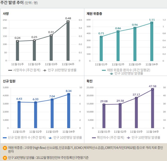 | (2021.11.29) 코로나19 단계적일상회복(위드코로나) 의료,방역 후속대응계획/:/ 시설과부하때문에 재택치료확대: 모든 확진자 재택치료원칙+통제된 외래진료. 예외인 경우만 입소/입원 (0) | 2021.11.29 |