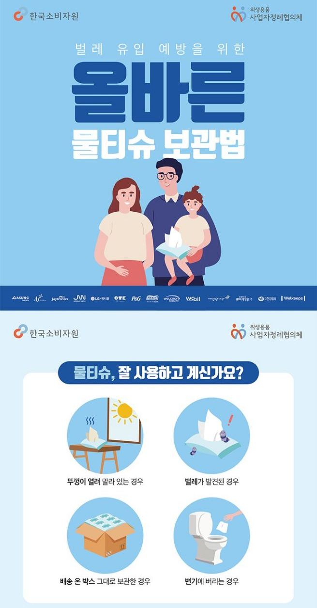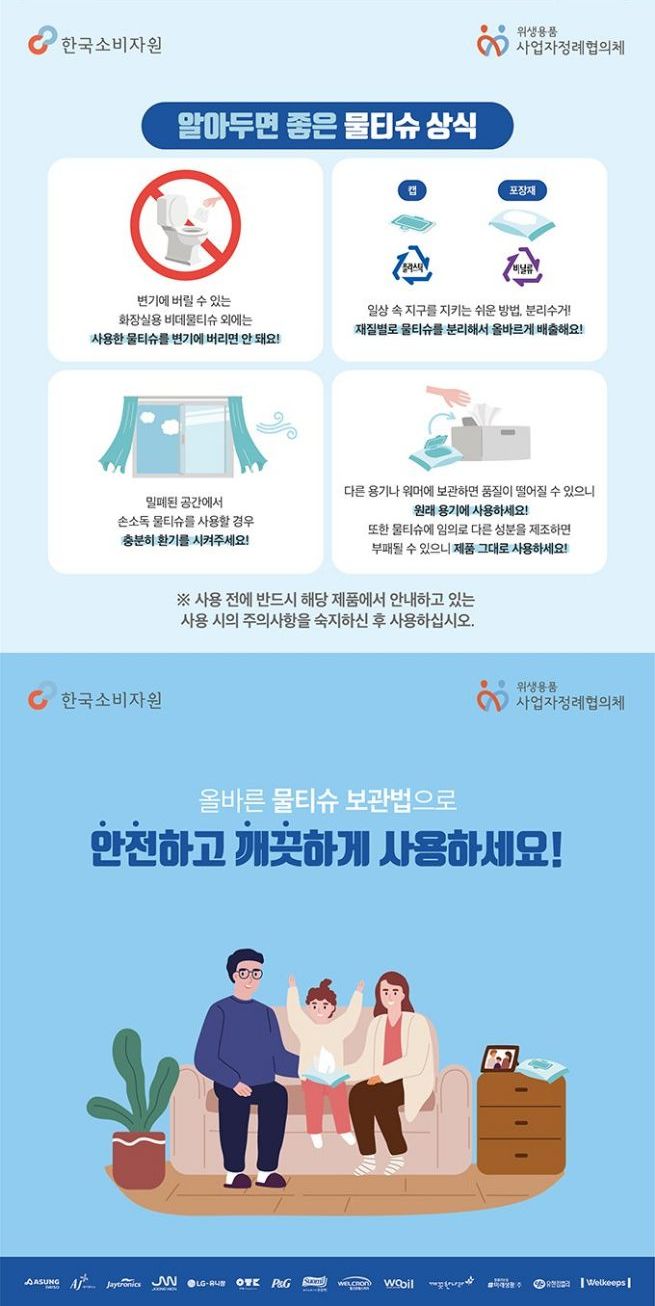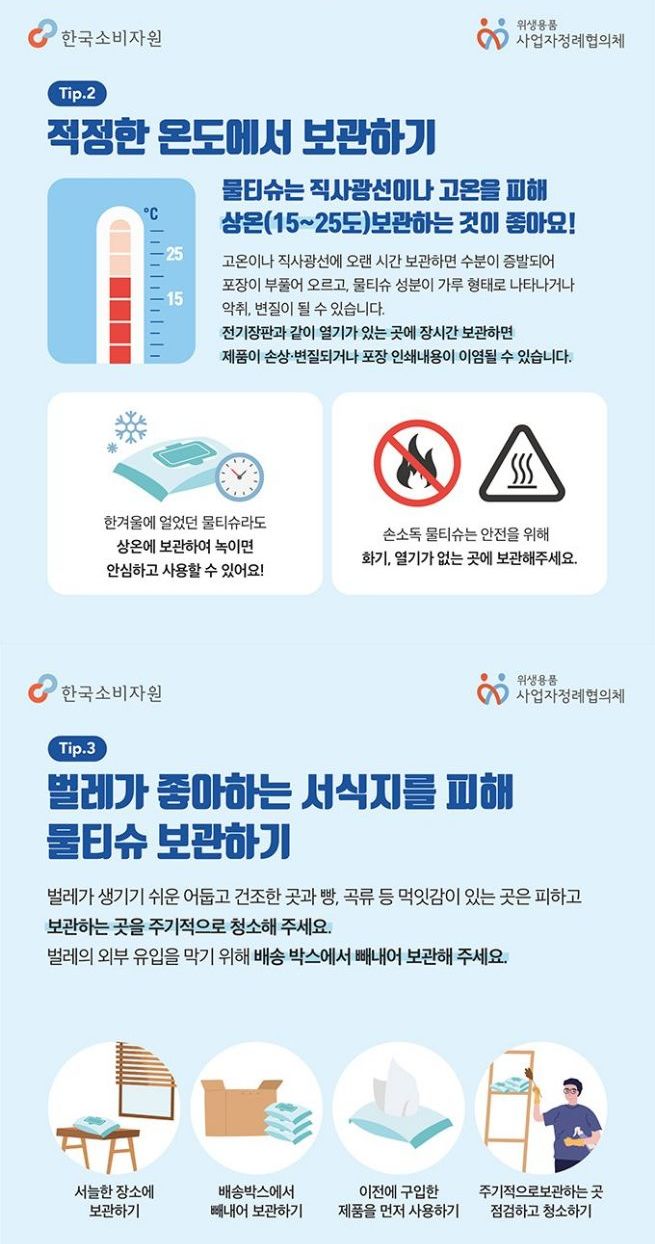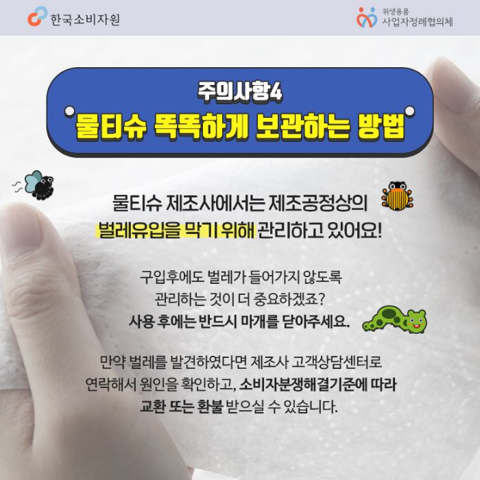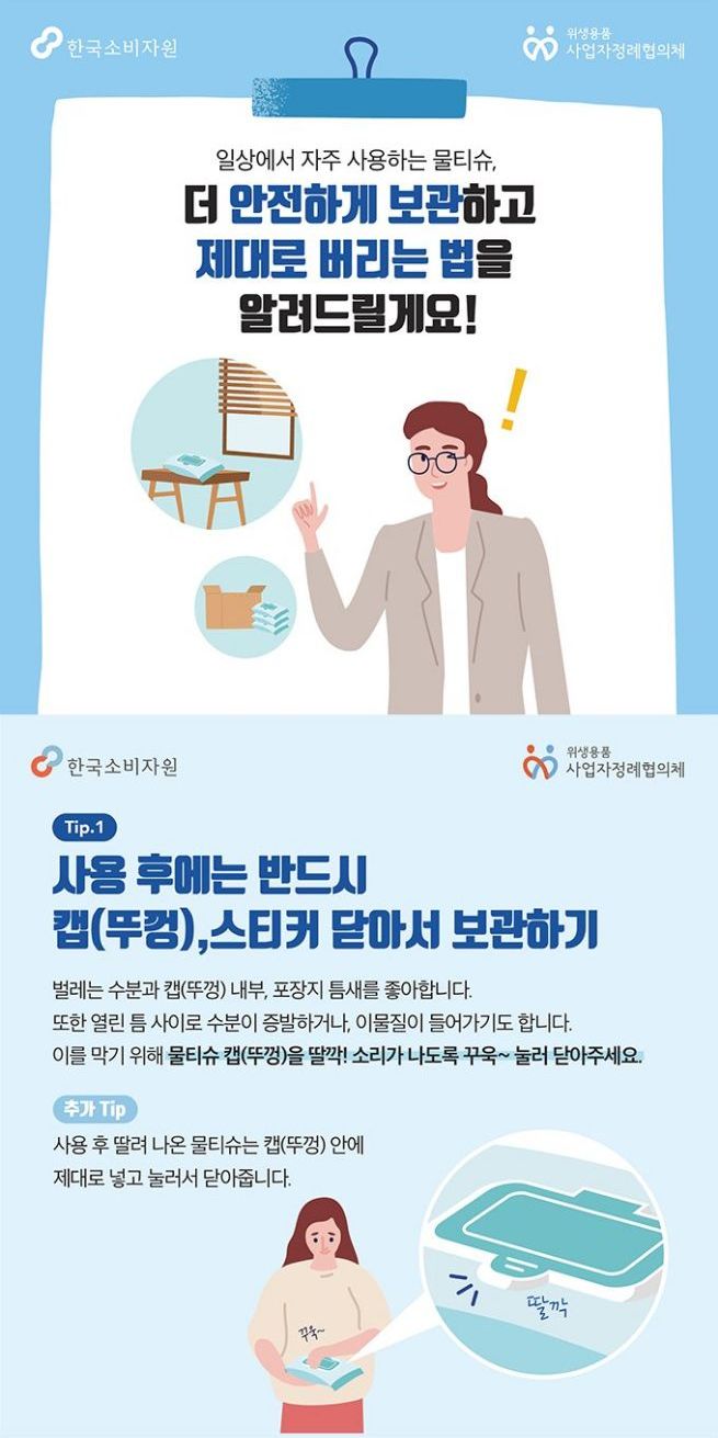 올바른 물티슈 사용법, 보관법, 폐기법(한국소비자원)