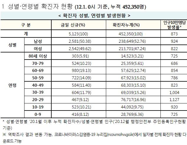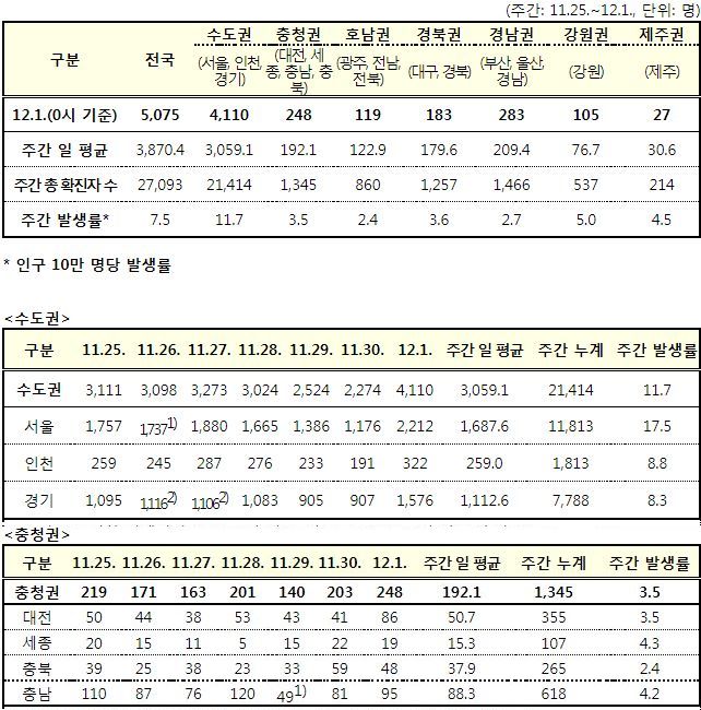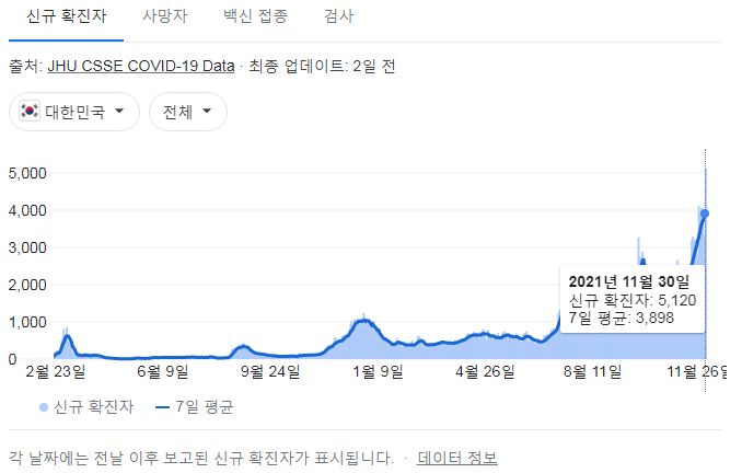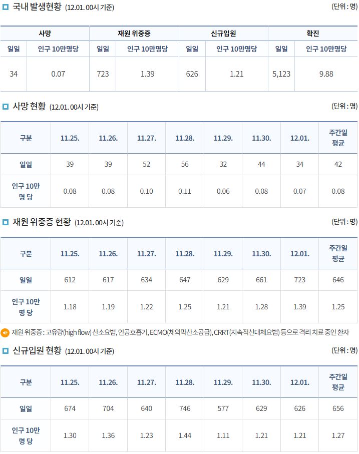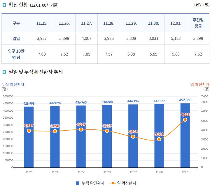 코로나19집계(2021.12.1. 0시기준): 5123명 본문