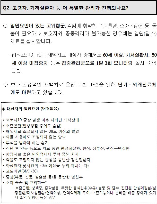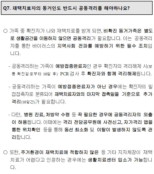 코로나19 재택치료 질의답변(Q&A)(2021.12.1) - 질병관리청 본문