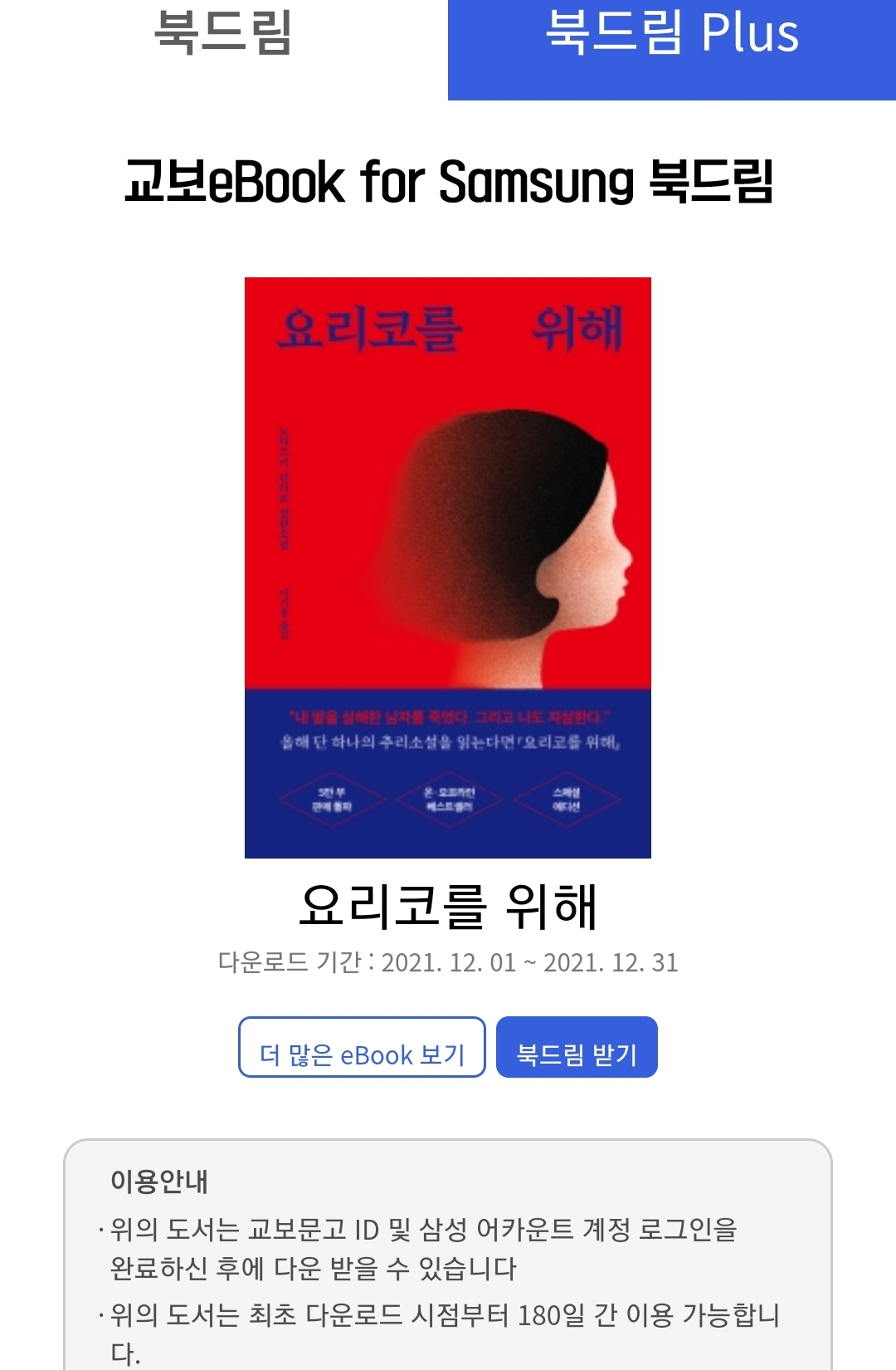 교보eBook for Samsung 이달의 무료책입니다. 삼성 갤럭시 단말기 사용자 + 교보문고 온라인 회원이면 볼 수 있습니다.