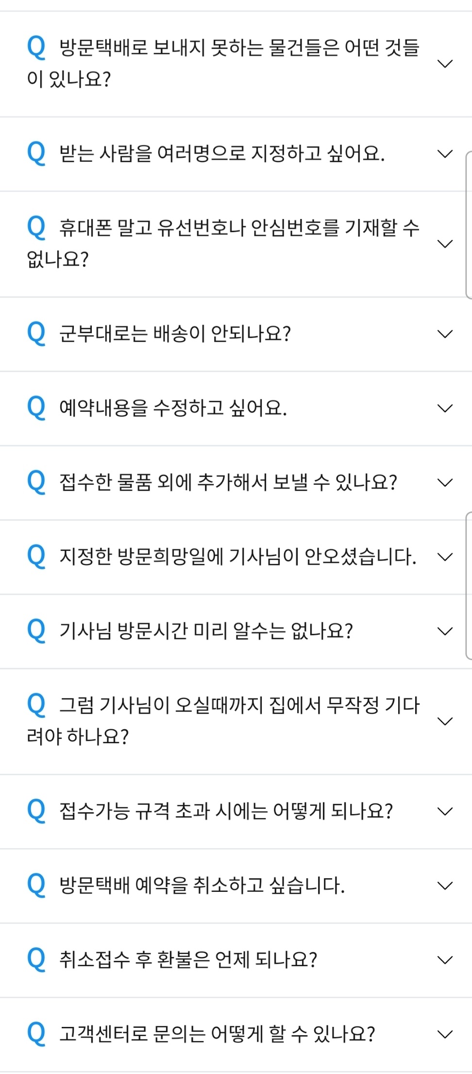 택배사 개인택배신청은 방문택배는 접수한 다음날 바로 오지는 않을 수 있습니다. 택배사에 전화나 앱으로 직접 신청하든 이런 제휴사서비스를 통해 신청하든, 물량계약한 사업자가 아닌 개인이 1건 예약한 경우 택배기사 동선에 따라 방문수거일정이 배정되는 것 같아서, 빠르면 익일, 보통 3일, 길면 5일 기다린다고 생각하는 게 편합니다. 다음날 확실하게 방문수거해가기를 바란다면 우체국택배죠. (앱이나 인터넷신청이 쌉니다)