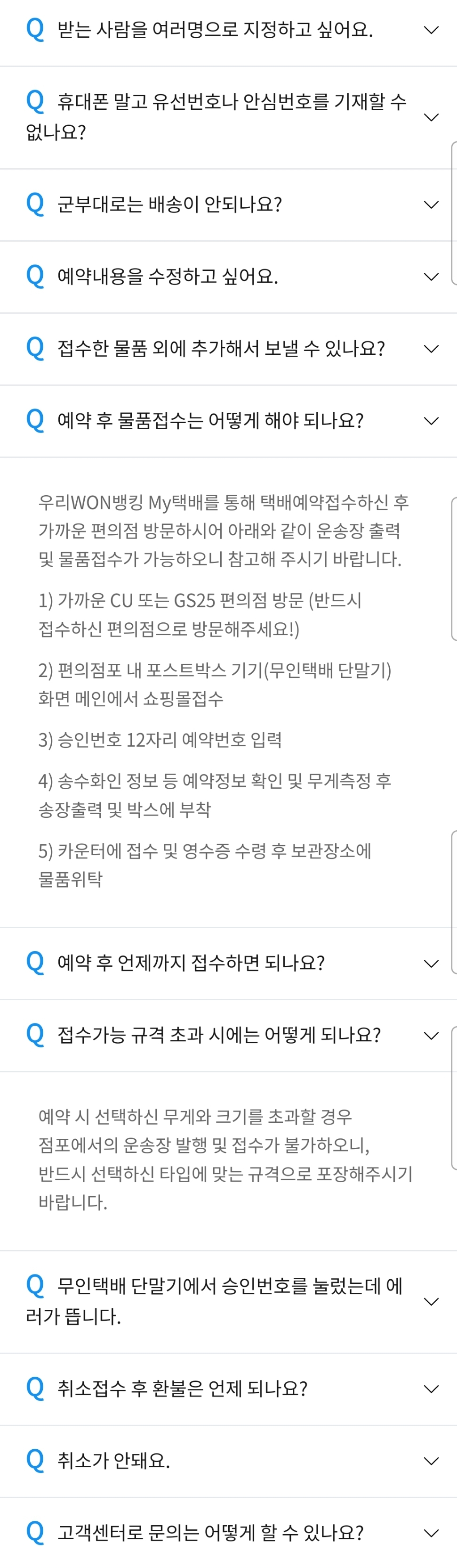 우리은행 앱에서 이용할 수 있는 방문택배(대한통운, 한진택배), 편의점택배(CU, GS25) 예약 본문