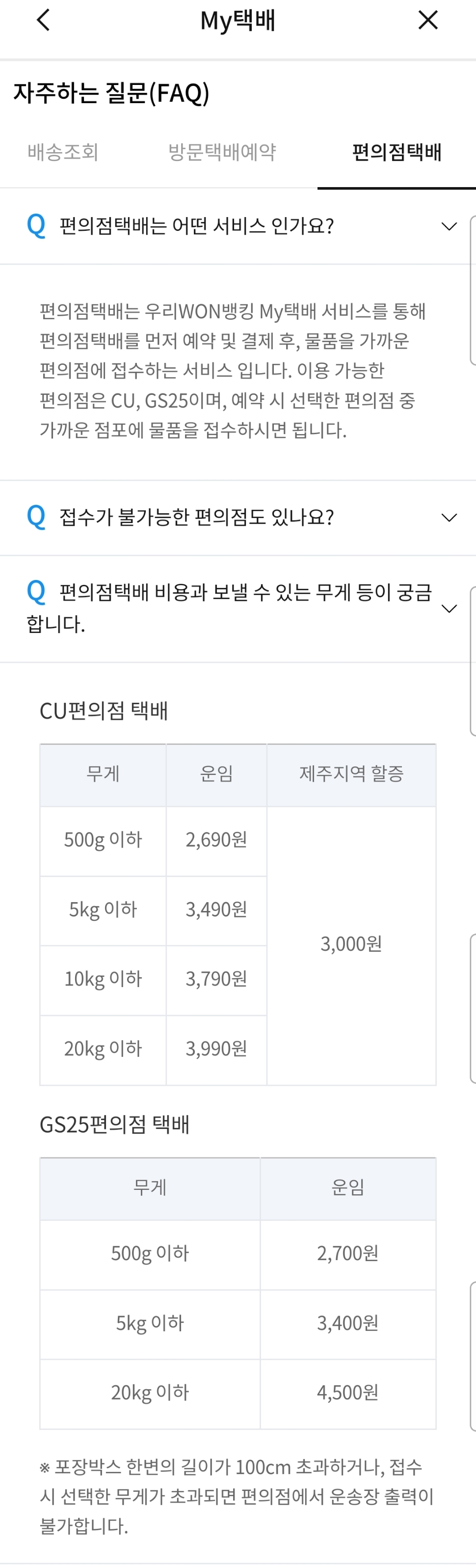 편의점택배는 CU, GS25의 무인택배 포스트박스(postbox)로 접수가능한 것.1